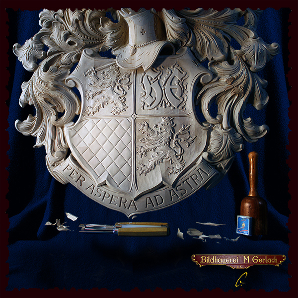 Unter anderem hat er sich auf das Gestalten, Schnitzen und fassen von Wappen aller Art spezialisiert. Seine Wappen sind mit Liebe zum Detail kunstvoll von Meisterhand geschnitzt. Er fertigt jedes Wappen in jeder Art und gewünschten Größe und bereichert somit seine adeligen Kunden die bürgerlichen Familien von Heute über die Zeit hinaus mit einem sichtbaren Zeichen. Ein Zeichen für Familie und Zusammenhalt vererbbar von Generation zu Generation, denn ein Wappen ist wie ein wertvolles Dokument.