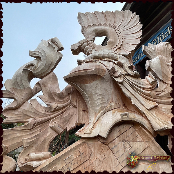 Unter anderem hat er sich auf das Gestalten, Schnitzen und fassen von Wappen aller Art spezialisiert. Seine Wappen sind mit Liebe zum Detail kunstvoll von Meisterhand geschnitzt. Er fertigt jedes Wappen in jeder Art und gewünschten Größe und bereichert somit seine adeligen Kunden die bürgerlichen Familien von Heute über die Zeit hinaus mit einem sichtbaren Zeichen. Ein Zeichen für Familie und Zusammenhalt vererbbar von Generation zu Generation, denn ein Wappen ist wie ein wertvolles Dokument.