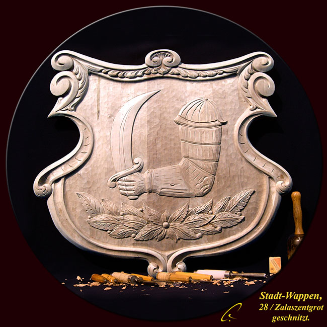 Stadtwappen / Zalaszengrot / 28 - geschnitzt, naturbelassen.