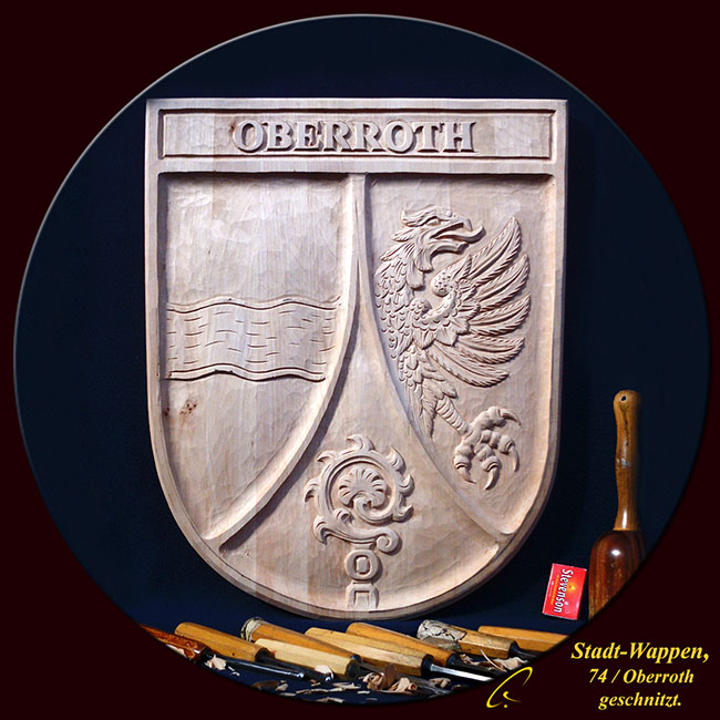Stadtwappen / Oberroth- 74 - geschnitzt, naturbelassen.