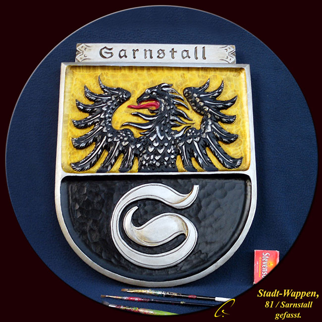 Unter anderem hat er sich auf das Gestalten, Schnitzen und fassen von Wappen aller Art spezialisiert. Seine Wappen sind mit Liebe zum Detail kunstvoll von Meisterhand geschnitzt. Er fertigt jedes Wappen in jeder Art und gewünschten Größe und bereichert somit seine adeligen Kunden die bürgerlichen Familien von Heute über die Zeit hinaus mit einem sichtbaren Zeichen. Ein Zeichen für Familie und Zusammenhalt vererbbar von Generation zu Generation, denn ein Wappen ist wie ein wertvolles Dokument.