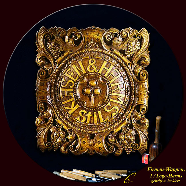 Firmen-Wappen / Harms - 1 /gebeizt u. lackiert .