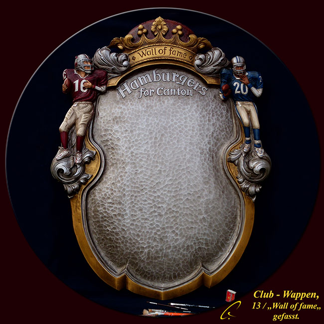 Clubwappen / ,,Wall of fame,, in den Club Farben gefasst .